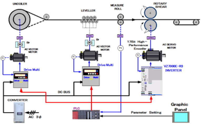 本系統(tǒng)采用矢量電機控制,具有速度/張力控制精度高等優(yōu)異特點,控制系統(tǒng)有三種模式(雙活套、單活套、重卷直拉)可切換,使用共直流母線方式,使再生發(fā)電負載回收能量。提高效率,降低不良量,廣泛受到諸如寶鋼、武鋼、鞍鋼、本鋼、中鋁等大型企業(yè)的青睞。